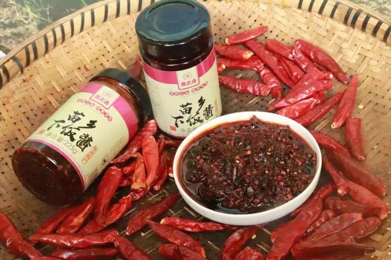 “美之选”品牌旗下含有:水豆豉系列、风味腐乳系列、辣椒酱系列、酱香豆豉系列、香辣豆豉系列、炭烤青椒拌饭酱、苗乡下饭酱、等多系列产品,产品种类多样化,符合大众化口味。 苗乡下饭酱 苗乡下饭酱选用贵州本地优质辣椒、土鸡和精炼植物油为原料,采用科学配方和现代工艺精制而成,麻辣鲜香,是拌面和佐餐之佳品,其中含有维生素、辣椒素、蛋白质、矿物质等较高营养成分,具有独特地方风味的佐餐调味品,该产品味美色鲜,营养丰富,有开胃健脾、增进食欲的功能,是烹调各种菜肴及凉拌、面食的理想调料,是居家旅游的方便佳品。